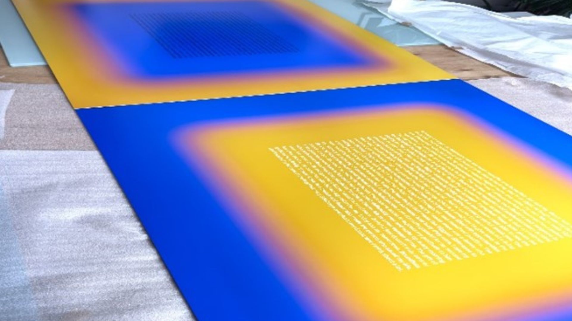 The finished installation features two large panels, each a mirror of the other, symbolising the connection between staff and patients. Their words, framed by vibrant light, speak of resilience, compassion, and gratitude. Together, they create a space that honours the emotional depth of the transplant journey.